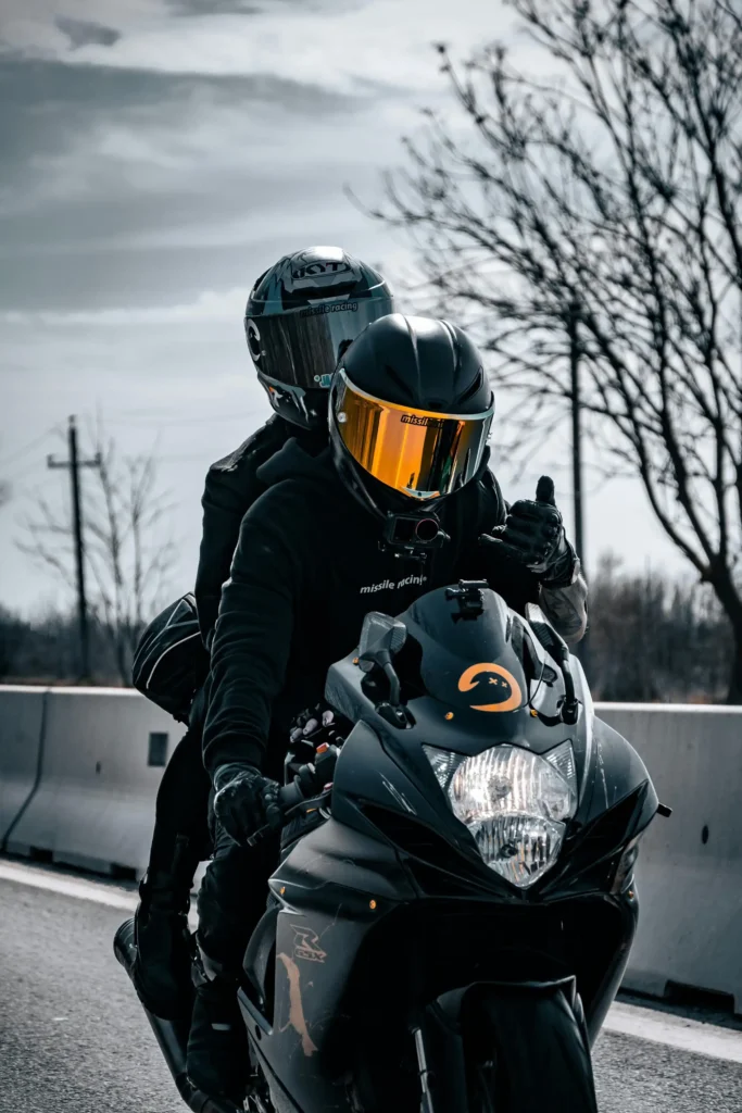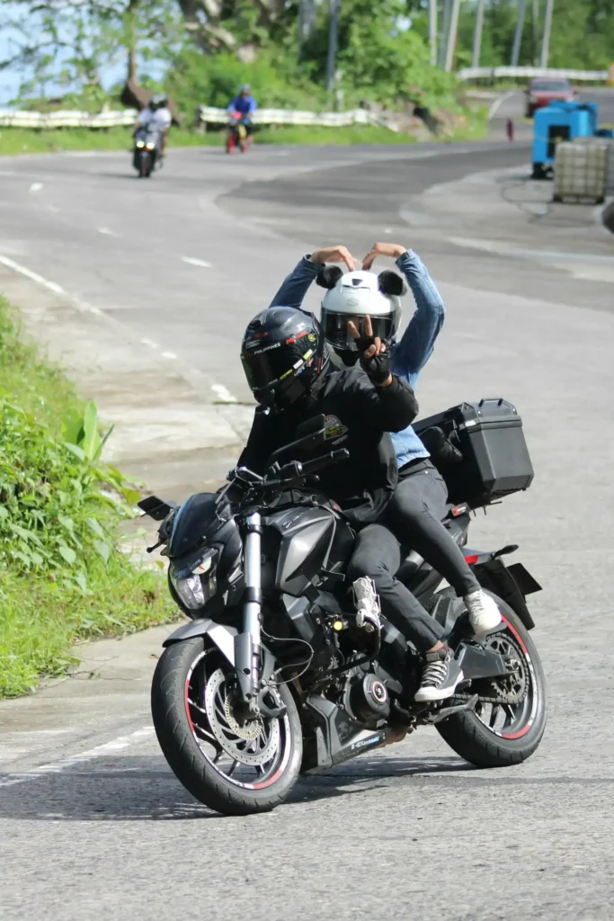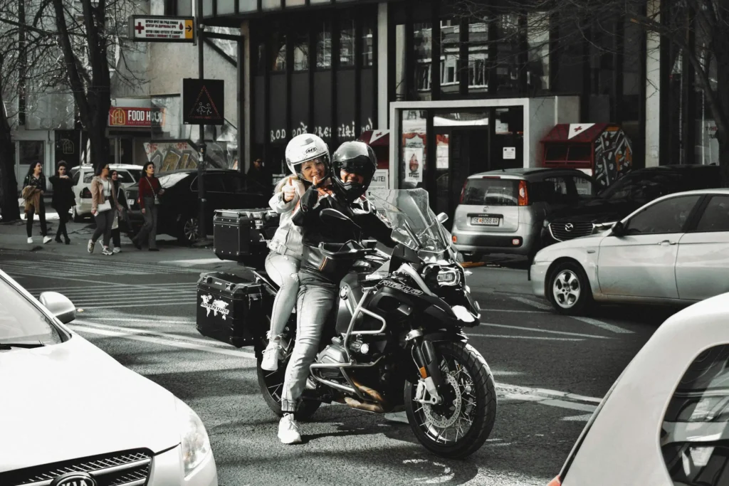 Another important point when riding together is protection. Even as a passenger, safety is crucial – something unexpected can happen. Always wear a certified helmet, good riding gear, gloves, and boots (and nowadays there’s a lot of stylish gear).